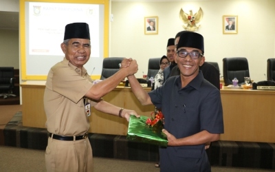 | Sekdakab Kampar secara simbolis menyerahkan LKPJ Bupati Kampar Tahun 2015 |