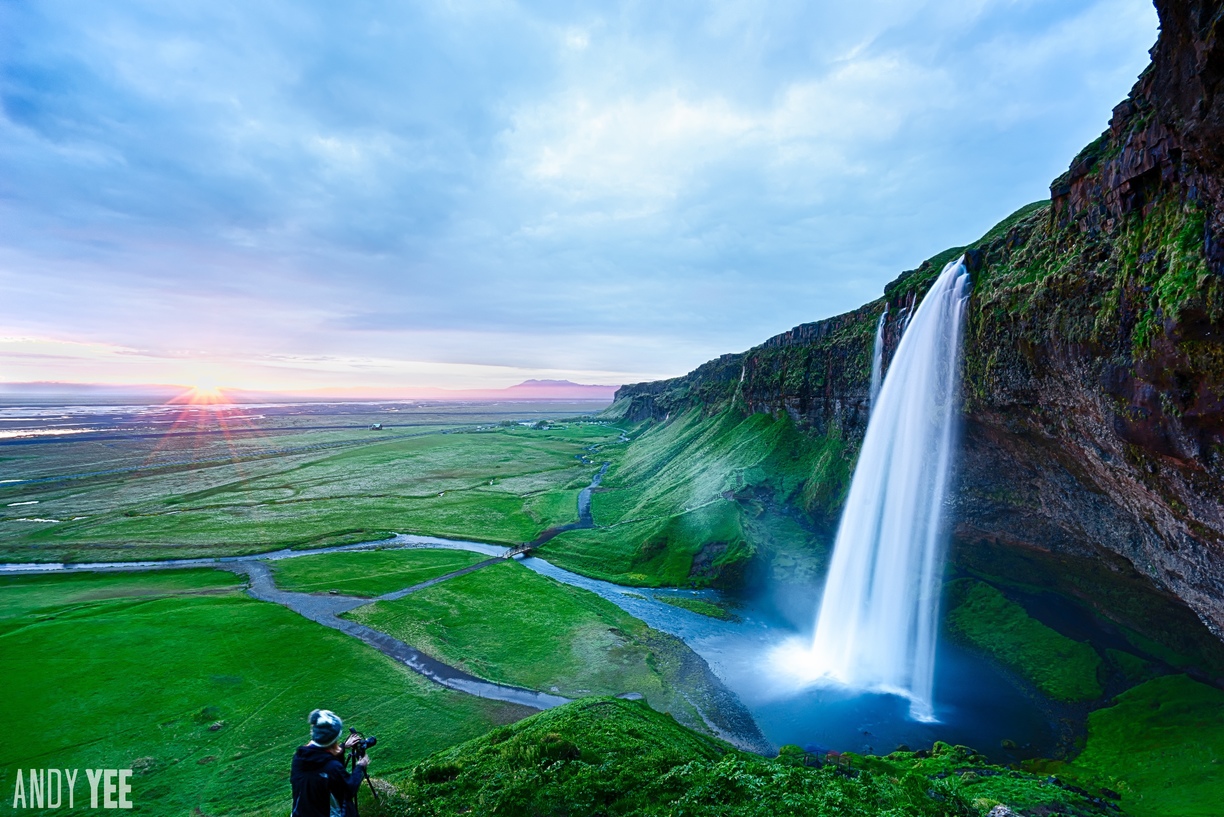 Salah satu air terjun terkenal di Islandia yaitu Seljalandsfoss. Air terjun ini memiliki pemandangan yang memesona lengkap dengan hamparan sawah hijau dan tebing yang kokoh. Pemandangan ini berhasil menghipnotis siapapun yang melewati kawasan ini dengan berhenti di sepanjang jalan sembari menikmati sunset yang indah.
