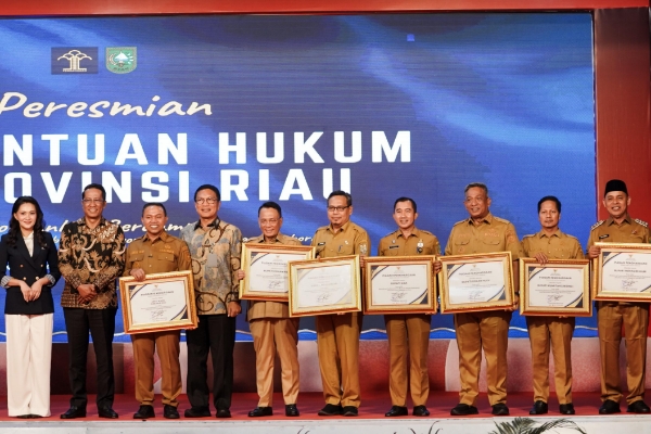 Penghargaan tersebut diterima dalam acara Peresmian Pos Bantuan Hukum dan Penandatanganan Perjanjian Kerjasama yang digelar di Aula Balai Serindit, Gubernuran Riau, Selasa (21/10/2025).