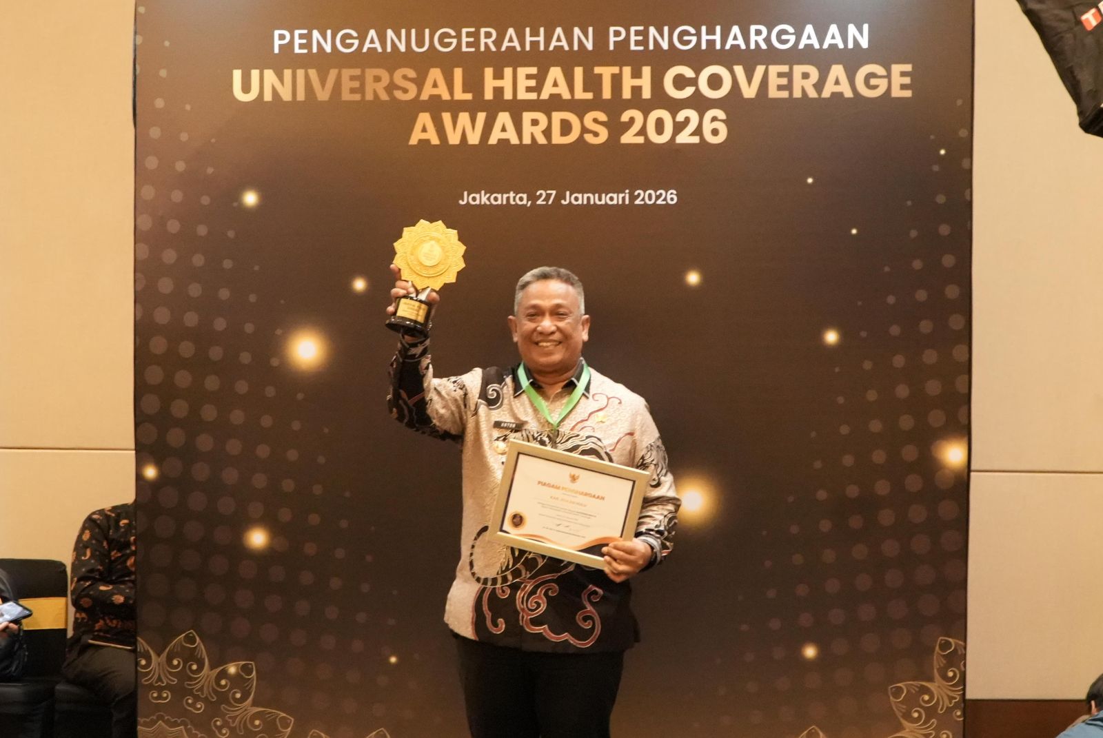 Penghargaan tersebut diserahkan langsung oleh Menteri Koordinator Bidang Pemberdayaan Masyarakat A. Muhaimin Iskandar, didampingi Menteri Kesehatan Budi Gunadi Sadikin dan Direktur Utama BPJS Kesehatan Ali Ghufron Mukti, dalam acara nasional di JIEXPO Kemayoran, Jakarta Pusat, Selasa (27/2026).