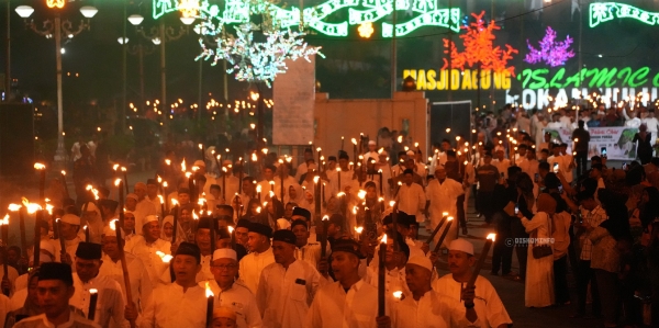 Rute sepanjang dua kilometer dari gerbang Masjid Agung dan kembali lagi ke halaman masjid tersebut dipadati oleh lautan manusia. Cahaya obor yang bergoyang tertiup angin malam seakan melambangkan semangat yang tak kunjung padam untuk terus menghidupkan syiar Islam di bumi "Negeri Seribu Suluk".