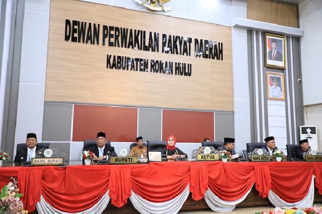 DPRD Rokan Hulu Riau menggelar Rapat Paripurna Penyampaian LKPj Bupati TA 2024, Senin 10 Maret 2025