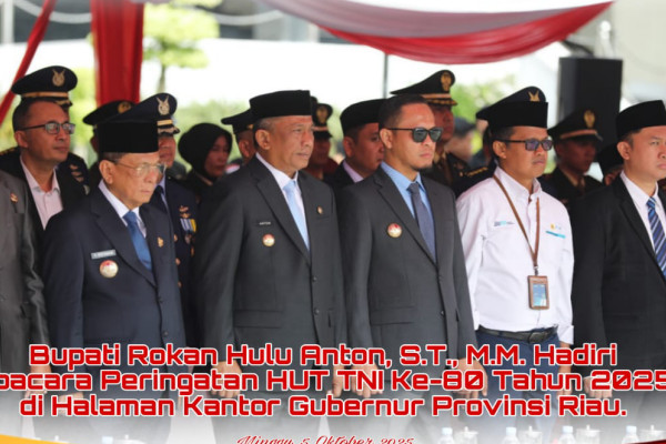 “Atas nama Pemerintah Kabupaten Rokan Hulu dan seluruh masyarakat, kami mengucapkan selamat HUT ke-80 TNI. Kami bersyukur karena hingga hari ini, TNI tetap menjadi benteng pertahanan bangsa dan selalu hadir di hati rakyat,” ujar Bupati Anton.