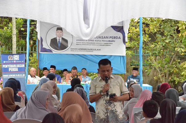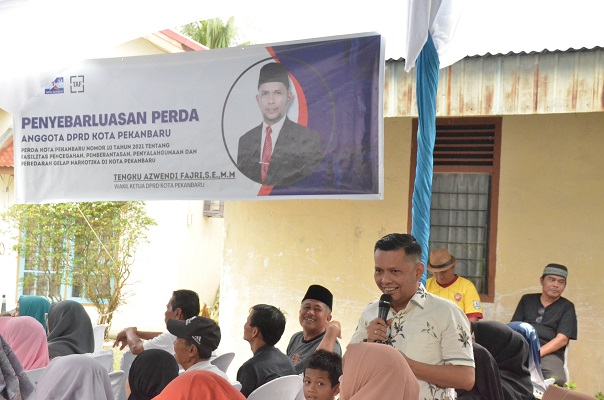 Metroterkini.com - Wakil Ketua DPRD Pekanbaru Tengku Azwendi Fajari memaparkan Perda Nomor 3 Tahun 2023 kepada masyarakat di Jalan Bougenville Kecamatan Sail pada Jumat (28/11).